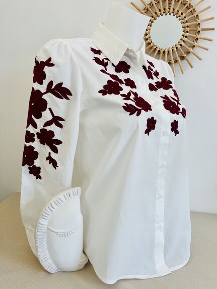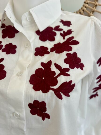 Laissez-vous séduire par cette superbe chemise blanche broderies florales.