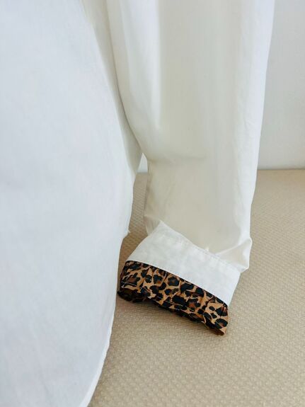 Cette chemise blanche réinvente les classiques grâce à ses finitions léopard pleines de caractère. La coupe épurée à l’avant rehaussée de jolis boutons léopard offre une allure sobre et raffinée.